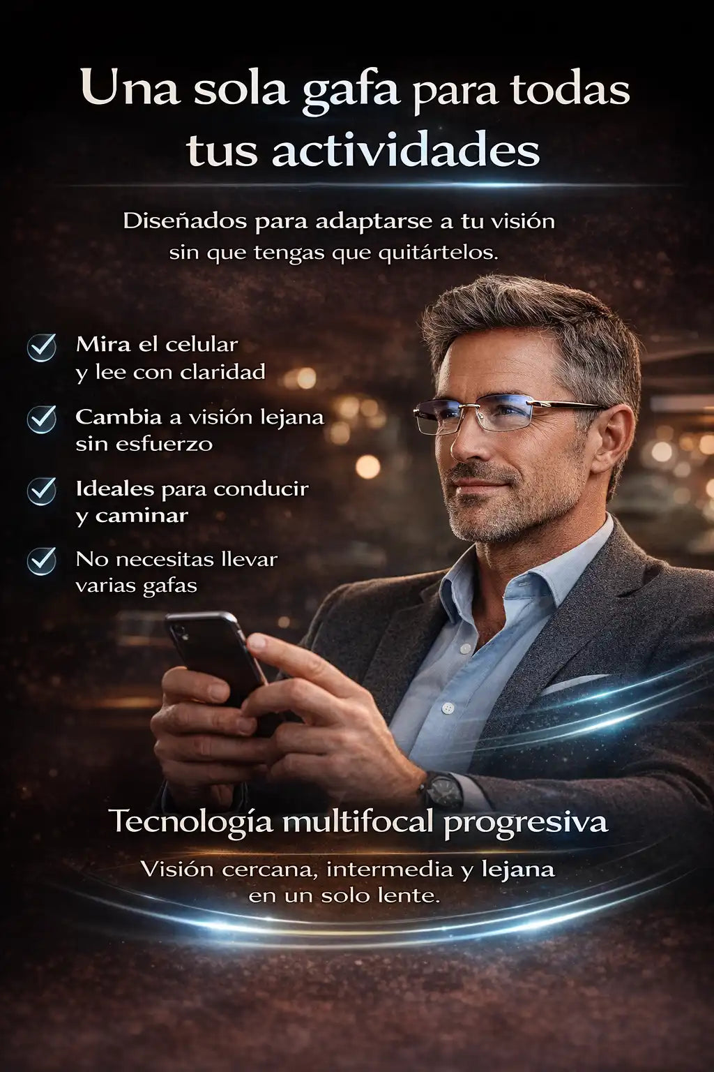 No. Estas gafas son multifocales, lo que significa que te permiten ver tanto de cerca como de lejos sin necesidad de cambiarlas. Puedes leer el celular o un documento y luego mirar al frente con claridad.